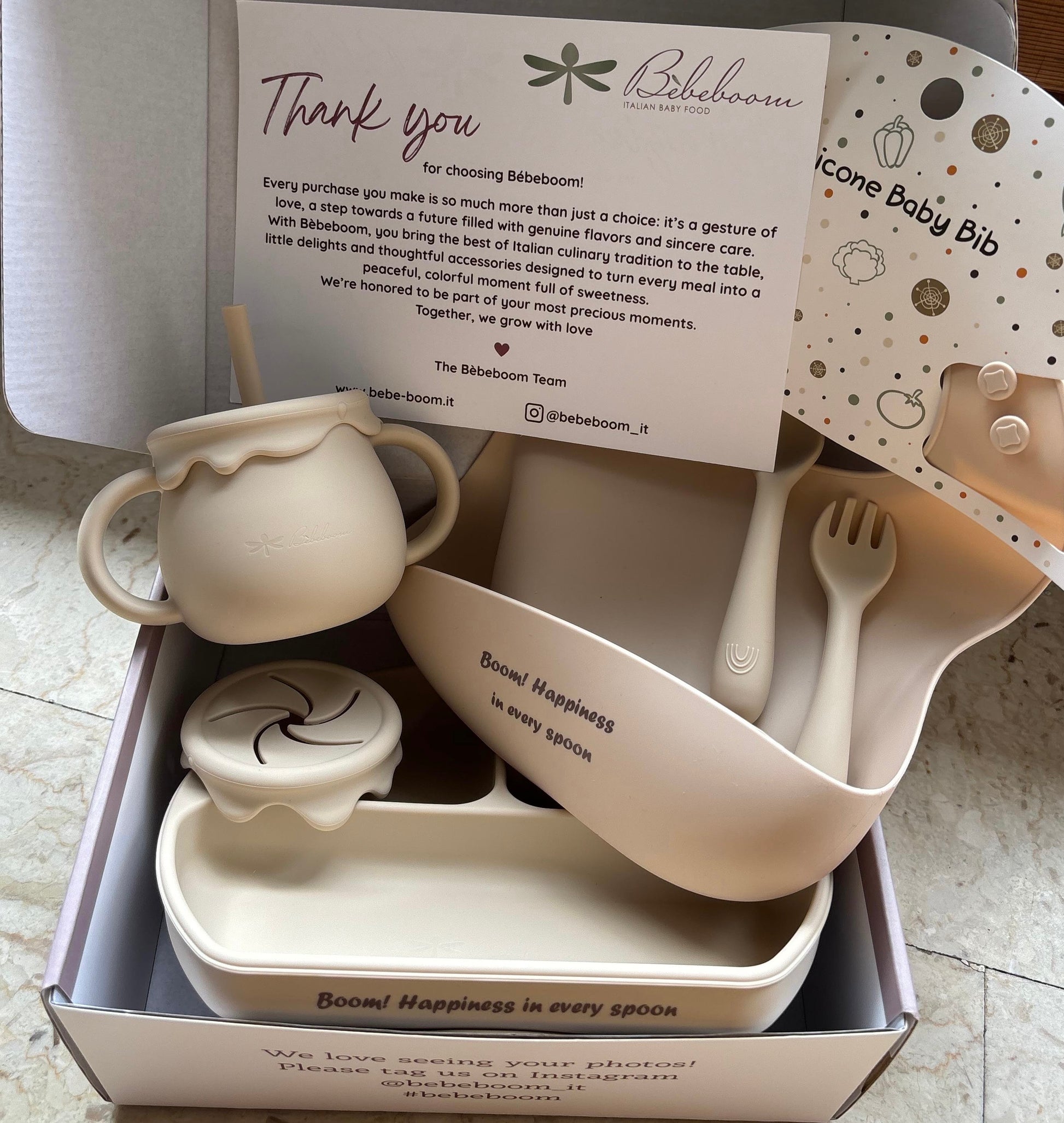 Allegra e funzionale, la Happy Boom Box è il set pappa intelligente e colorato che trasforma ogni pasto in un momento sereno e divertente. Un kit completo di stoviglie per bambini in silicone che unisce design, sicurezza e praticità, ideale come regalo o come primo set pappa per lo svezzamento.